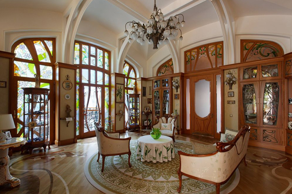 Головна його риса? Плавні вигини, асиметрія і нескінченне натхнення природою. Квіти, листя, виноградні лози, метелики — здається, що самі стіни і меблі у цих інтер’єрах оживають і пульсують.